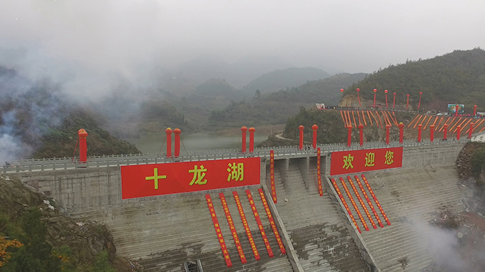 2016年12月,由AK(中国)实业全额投资8800万元的民生水利工程-十龙湖竣工。该水利工程挡水坝为浆砌条石重力大坝,坝轴线长173米,坝高50.1米,坝底部宽50米,坝顶部宽7米。水库占地面积237.02亩,设计总库容138万立方米,正常蓄水水位273米,设计灌溉面积19050亩,能解决生活用水20940人。